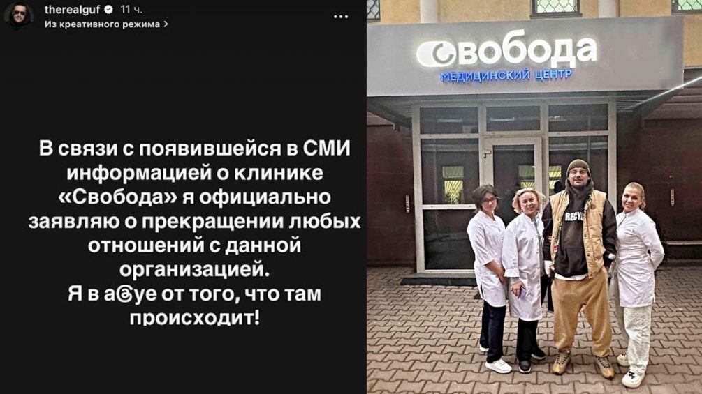«В связи с появившейся в СМИ информацией о клинике «Свобода» я официально заявляю о прекращении любых отношений с данной организацией. Я в *** от того, что там происходит», — писал Гуф.