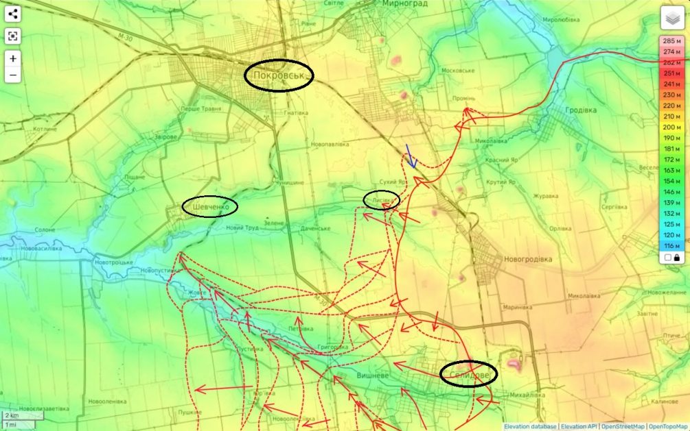 На Покровском направлении наши войска продолжают успешно продвигаться, пробивая оборону противника южнее Покровска. На днях наши части смогли занять южную часть Лысовки и почти достигли населенного пункта Шевченко. Хотя быстро взять этот населенный пункт не представляется возможным из-за значительного объема работ восточнее, важно отметить, что потеря Шевченко станет серьезной проблемой для Вооруженных сил Украины, так как это уже южные пригороды Покровска. Удержание этого района имеет стратегическое значение и может существенно повлиять на дальнейшие боевые действия в регионе.