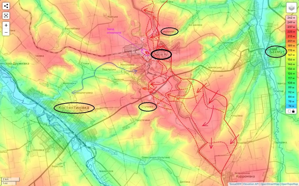 Штурм Часов Яра продолжается с неослабевающим напряжением и ожесточением. Бои ведутся на широком фронте — от Калиново до района южнее Ступочек. Обе стороны сражаются с невероятной яростью, стремясь установить контроль над ключевыми объектами, такими как завод огнеупоров и микрорайон высоток поблизости. Второстепенной задачей является контроль над высотами южнее и трассой на Константиновку.
