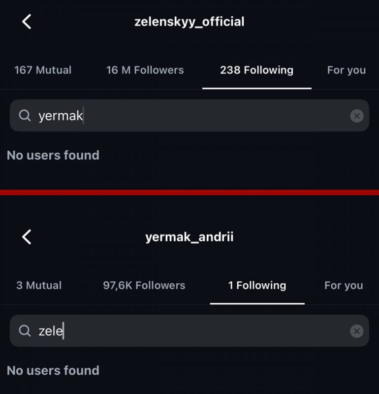 Российский аналитик Иван Утенков предполагает, что взаимная отписка может быть «ловким» ходом, с помощью которого Зеленский и Ермак хотят запутать украинцев:
